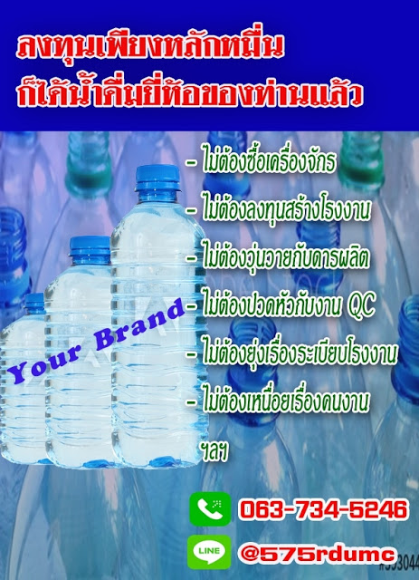 ฉะนั้นจะดื่มน้ำยี่ห้ออื่นทำไม? ในเมื่อคุณสามารถมีน้ำดื่มในแบรนด์ของตัวเองได้ง่ายๆ ในราคาที่ย่อมเยา เพียงติดต่อเรา