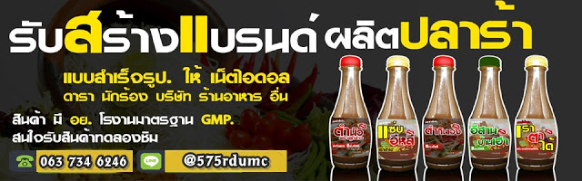 รับผลิตน้ำปลาร้าตามสูตรลูกค้า ปรับปรุงสูตรตามความต้องการของลูกค้า ปลาร้า มี อย. โรงงานมีมาตรฐาน GMP รับตัวแทนจำหน่าย น้ำปลาร้าทรงเครื่องทั่วประเทศ รับสร้างแบรนด์ปลาร้าให้คนดัง เน็ตไอดอล ดารานักร้อง ร้านอาหาร บริษัทต่างๆ